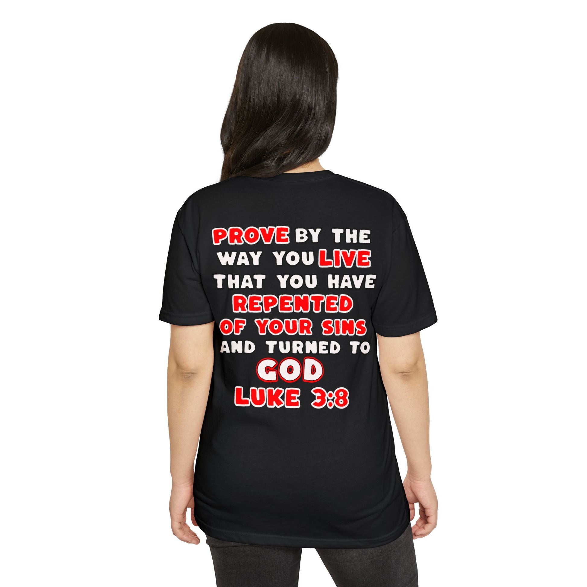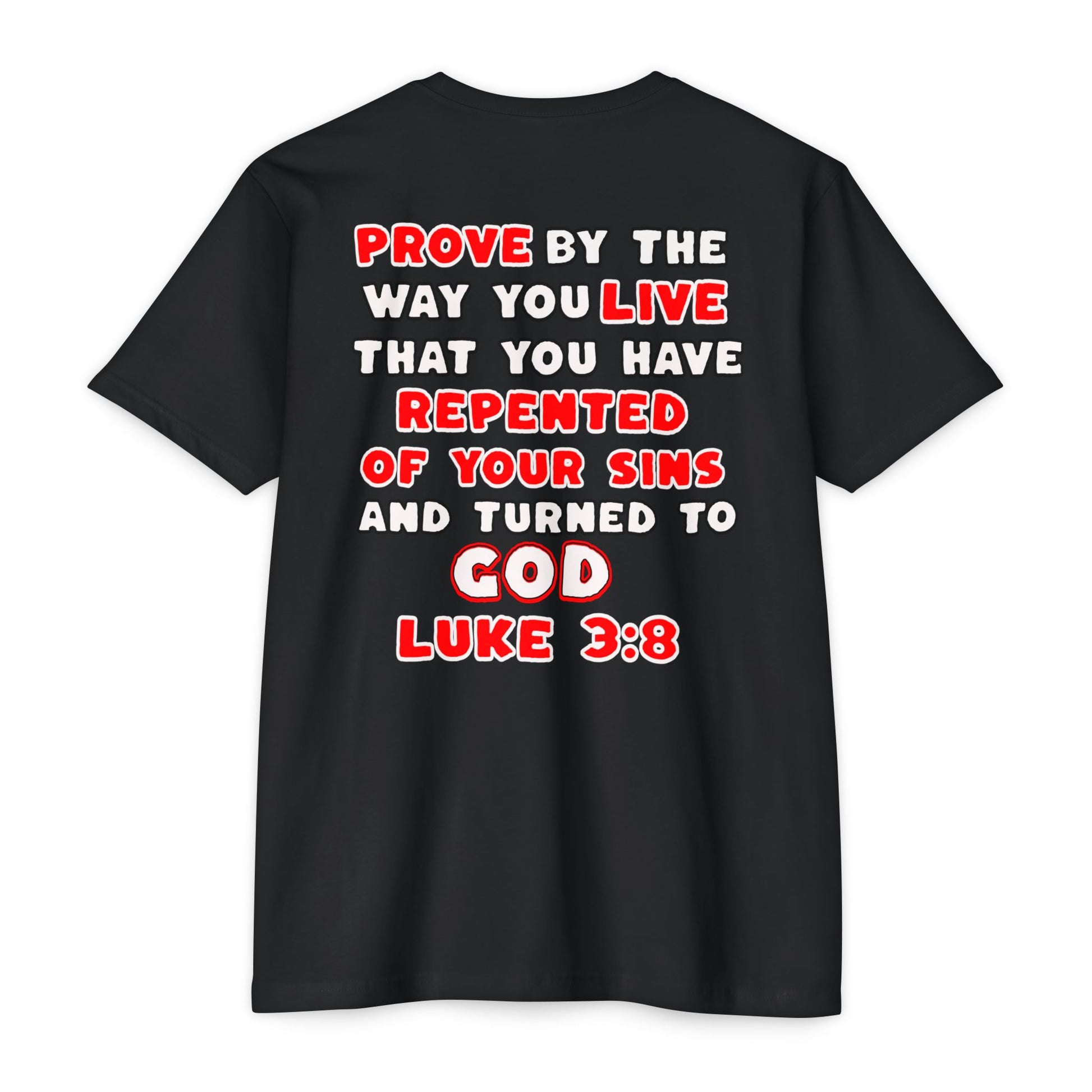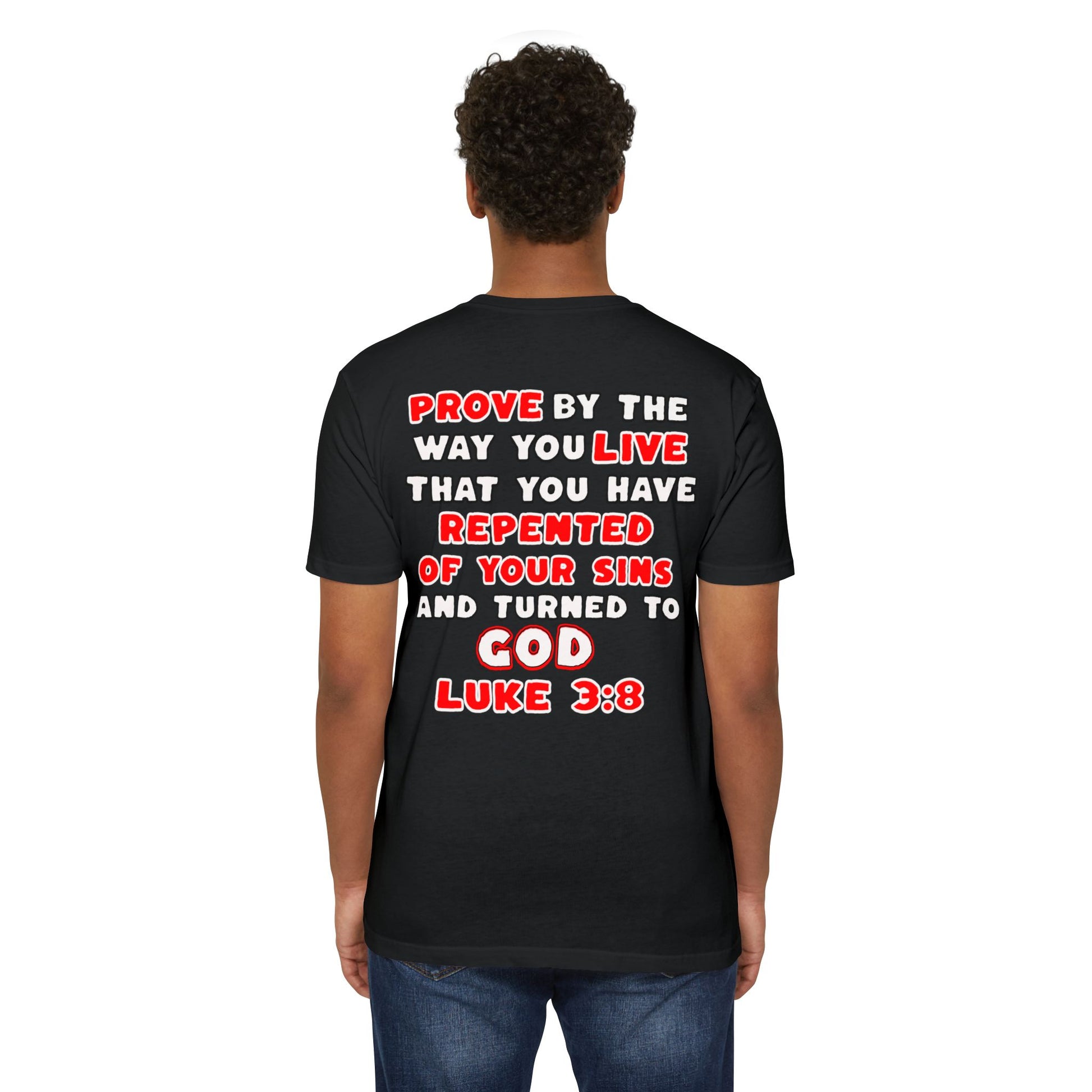 Make a statement that’s more than style. This black tee features the bold FTM Nation logo on the front and a powerful verse from Luke 3:8 on the back—John the Baptist’s call reminding us that repentance is more than words; it’s action that bears real fruit.